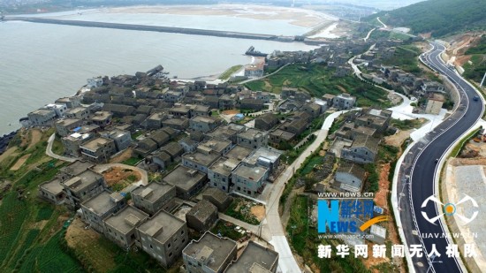 石頭古厝群沿海岸分布,新修建的環(huán)島路從山邊穿過。 肖和勇攝