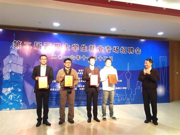 在招聘會(huì)開(kāi)始前,楊浦區(qū)委領(lǐng)導(dǎo)與市教委領(lǐng)導(dǎo)為長(zhǎng)期支持、參與楊浦區(qū)兩岸學(xué)生就業(yè)服務(wù)工作的企業(yè)頒發(fā)感謝狀。