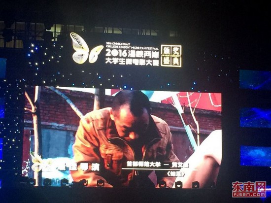 來自上海戲劇學(xué)院的韓嘉文的作品<星光照相館>奪得最佳導(dǎo)演獎;中國傳媒大學(xué)南廣學(xué)院的傅藝超的<崗派公路>獲得最具創(chuàng)意獎;閩南師范大學(xué)蘇炳蔚的<下一站,閩南師范大學(xué)>獲得最佳廣告獎;北京電影學(xué)院傅博的<黑面>獲得最佳微電影獎;閩南師范大學(xué)陳仁欽的<向陽花開>等5部作品獲得最佳公益微電影獎。