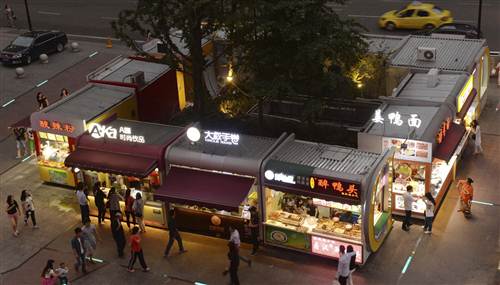 在渝中區(qū)較場(chǎng)口得意世界,集裝箱式移動(dòng)商鋪成為夜市一大特色。記者 張錦輝 攝