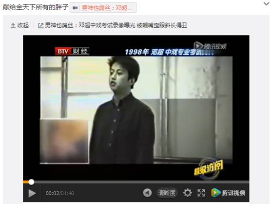 就連早期的大胖子視頻也在微博大方分享,原來男神以前也是胖子也是屌絲啊,多么激勵人的視頻,所以說每個胖子都是潛力股,各位女孩們趕緊珍惜身邊的胖子吧!