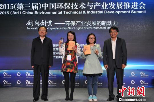 中新網(wǎng)南京10月29日電(記者 洪曉紅 孫權(quán))經(jīng)過北京、南京兩站師徒選拔賽的激烈競爭,2015黑馬大賽環(huán)保創(chuàng)新創(chuàng)業(yè)大賽總決賽最終在“中國環(huán)保之鄉(xiāng)”宜興落幕,浙江維樸環(huán)境科技有限公司和HI-SOT梯度復(fù)合臭氧催化氧化技術(shù)團(tuán)隊(duì)分別摘得企業(yè)、團(tuán)隊(duì)組的桂冠。29日,在宜興舉行的2015中國環(huán)保技術(shù)與產(chǎn)業(yè)發(fā)展推進(jìn)會(huì)上,科技部副部長張來武與無錫市委書記李小敏一同為大賽一等獎(jiǎng)獲得者頒獎(jiǎng)。