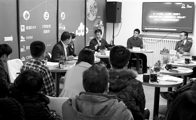 12月12日,由優(yōu)府集團(tuán)拓荒族眾創(chuàng)空間舉辦的國(guó)內(nèi)知名媒體創(chuàng)新創(chuàng)業(yè)圓桌沙龍?jiān)诒本┲嘘P(guān)村創(chuàng)業(yè)大街舉行。本次沙龍以“傳媒大變局:危機(jī)下的新機(jī)遇”為主題,邀請(qǐng)國(guó)內(nèi)知名媒體人就創(chuàng)業(yè)和創(chuàng)新的發(fā)展趨勢(shì)進(jìn)行交流。本報(bào)記者 周維海攝