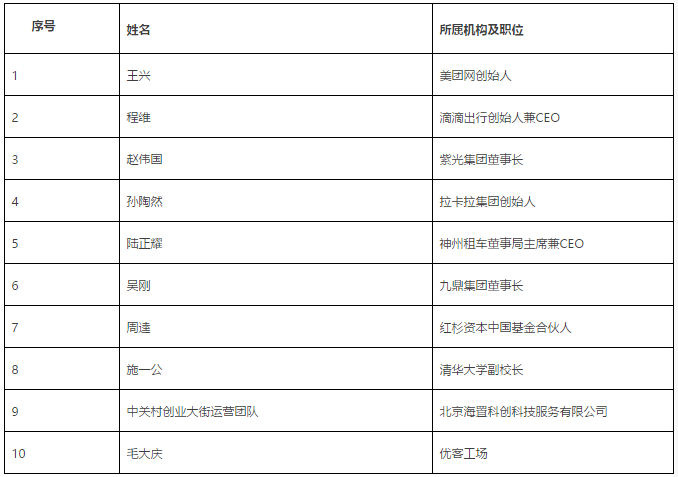 2015中關(guān)村年度人物榜單推介結(jié)果如下: