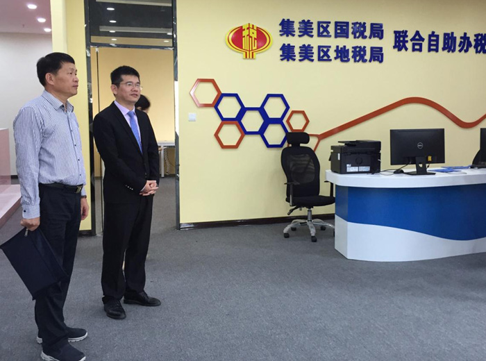 洪龍泉副局長等一行參觀海峽兩岸青年創(chuàng)業(yè)基地國地稅聯(lián)合服務站