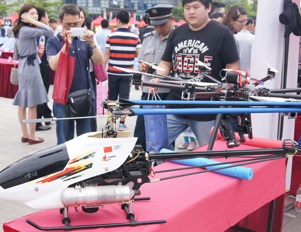 一品創(chuàng)客·海峽兩岸無(wú)人機(jī)暨智能機(jī)器人海滄孵化基地團(tuán)隊(duì)展示的無(wú)人機(jī)