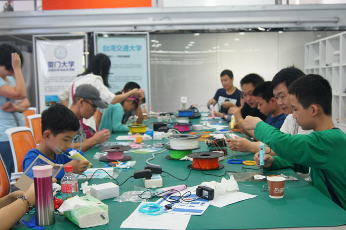 海峽兩岸無人機暨智能機器人孵化基地攜手智凡三維團隊,舉辦3D打印親子體驗活動,帶來了最潮的3D打印筆。3D打印筆基于3D打印原理,擠出熱融的塑料,然后在空氣中迅速冷卻,最后固化成穩(wěn)定的狀態(tài)。活動現(xiàn)場,小朋友們利用這支神筆,做了一回“神筆馬良”,把創(chuàng)意馬上成型,共同創(chuàng)作3D立體畫。