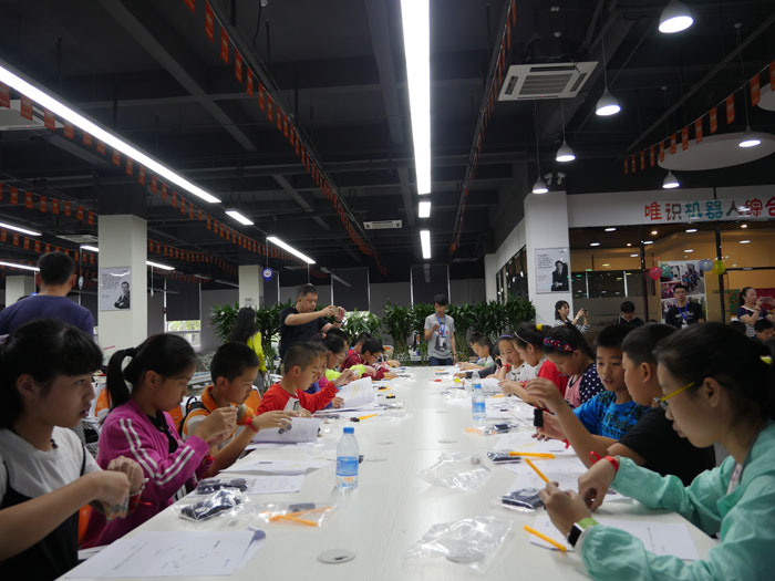 5月21日,孩子們還參與由唯識機器人綜合教育團隊組織的DIY科技小制作動手活動,完成戰(zhàn)車計時賽等項目。這次的DIY科技小制作比以往更有難度,但是并沒有阻擋小創(chuàng)客們的熱情,每個小朋友都在認真地制作著。