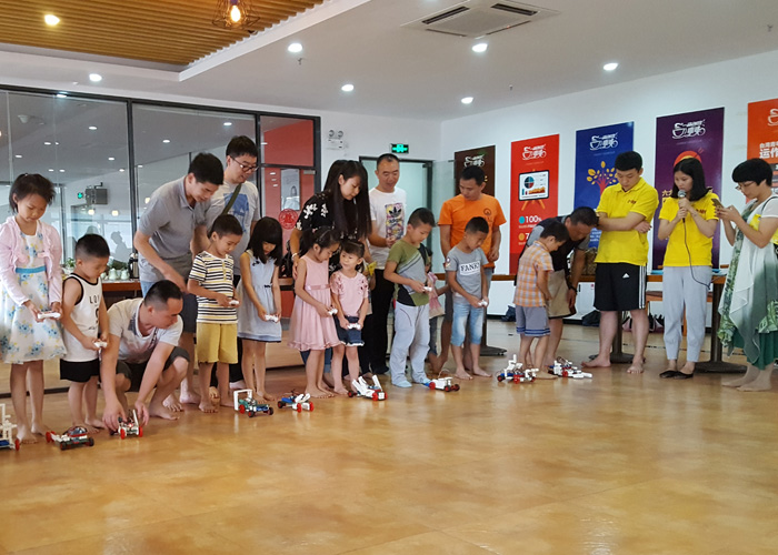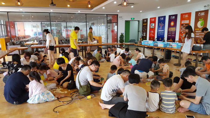 6月5日下午,一品創(chuàng)客集孵化美基地與小玩伴機器人創(chuàng)客空間聯(lián)合舉行了“親子科技周·親子游樂大比拼”活動。雖然天公不作美,下起了大雨,但是依舊擋不住家長和小朋友們的熱情,現(xiàn)場人氣爆棚。大、小朋友在咖啡廳進行了一場場科技大比拼。