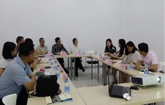 參觀完畢,雙方開展了交流座談會,慧高·光創(chuàng)園行政總監(jiān)潘蘭英女士為參訪團做園區(qū)介紹和工作匯報,然后雙方圍繞園區(qū)經(jīng)營模式、臺青創(chuàng)業(yè)情況、政府如何扶持園區(qū)發(fā)展、政府政策如何對接企業(yè)等進行深入交流。