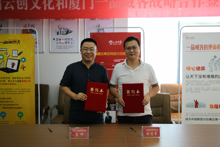 又一重量級服務商加入一品威客網!7月29日下午,深圳云創(chuàng)文化與一品威客網在廈門舉行了簽約儀式。接下來,雙方將通過緊密的合作,打造雙贏、可持續(xù)發(fā)展的戰(zhàn)略合作伙伴關系,充分發(fā)揮各自優(yōu)勢,為用戶提供更好的產品及服務。