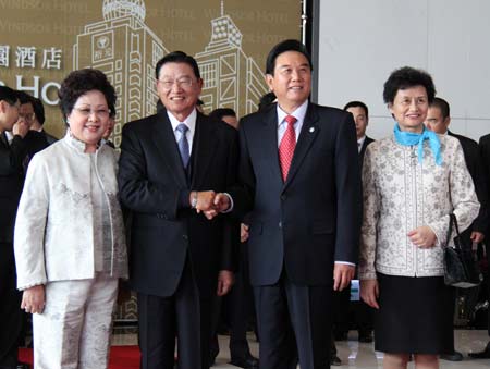 He also called on business people from both sides to discuss cooperation in fields such as computer hardware and software, photoelectric industry, textile, car making, logistics and business service to promote the mainland investment in Taiwan.