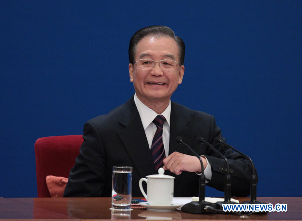Chinese Premier Wen Jiabao attends a press conference after the closing meeting of the Fourth Session of the 11th National People's Congress (NPC) at the Great Hall of the People in Beijing, China, March 14, 2011. (Xinhua/Xing Guangli)