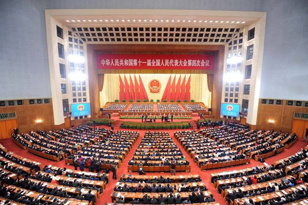 The Fourth Session of the 11th National People's Congress holds its closing meeting at the Great Hall of the People in Beijing, China, March 14, 2011. (Xinhua/Liu Jiansheng)