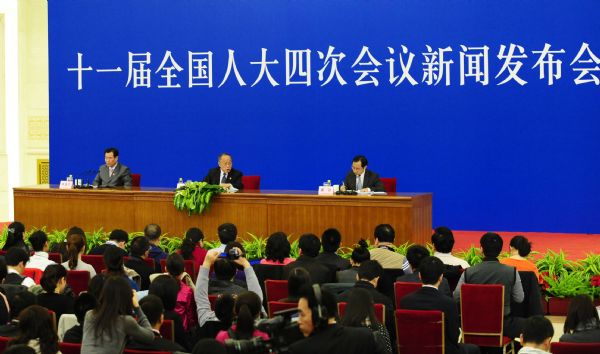 The news conference on the Fourth Session of the 11th National People's Congress (NPC) is held at the Great Hall of the People in Beijing, capital of China, March 4, 2011. (Xinhua/Ren Yong)