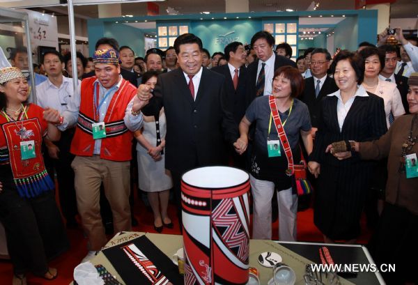 Top political advisor Jia Qinglin made the remark during a visit to the Third Cross-Strait Cultural Industry Fair that opened in Xiamen of southeast Fujian Province on Saturday.