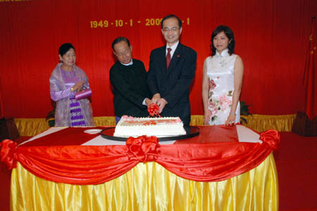 At the reception, Tin Aung Myint Oo congratulated China's 60th founding anniversary, saying that Myanmar highly appreciated the relations between Myanmar and China and adding that Myanmar would as always continue to develop the friendly and cooperative ties in every sector.