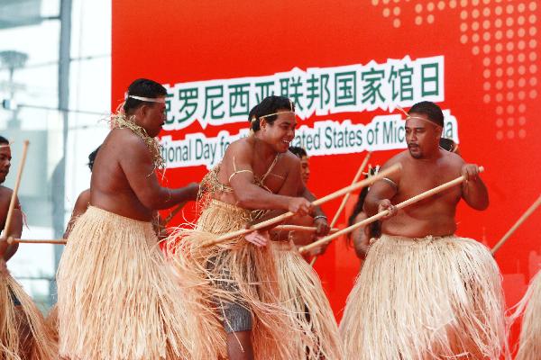 Dancers perform during a ceremony marking the National Pavilion Day for the Federated States of Micronesia at the 2010 World Expo in Shanghai, east China, Aug. 29, 2010. (Xinhua/Liu Ying)