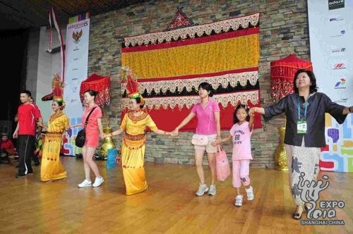 The Indonesia Pavilion welcomed its 6 millionth visitor today, an eight-year-old girl named Ye Xinyi from Suzhou in Jiangsu Province accompanied by her mother Ye Zhen.