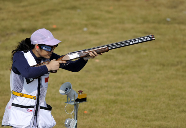 Zhang Shan of China shoots during the competition of Women's Skeet Team of shooting at the 16th Asian Games in Guangzhou, south China's Guangdong Province, Nov. 23, 2010. The team of China claimed the title. (Xinhua/Chen Yehua)