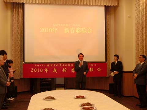 長(zhǎng)崎中國(guó)留學(xué)生學(xué)友會(huì)會(huì)長(zhǎng)張賀在聯(lián)歡會(huì)上致詞,他對(duì)與會(huì)中外來(lái)賓長(zhǎng)期以來(lái)對(duì)長(zhǎng)崎地區(qū)中國(guó)留學(xué)生的關(guān)心和幫助表示感謝,并介紹了長(zhǎng)崎中國(guó)留學(xué)生學(xué)友會(huì)及縣內(nèi)各大學(xué)中國(guó)留學(xué)生團(tuán)體的發(fā)展情況。張賀同學(xué)同時(shí)表示,長(zhǎng)崎地區(qū)的中國(guó)留學(xué)生雖然來(lái)自祖國(guó)各地,但大家在中國(guó)駐長(zhǎng)崎總領(lǐng)事館的關(guān)懷和指導(dǎo)下,都能夠繼承和發(fā)揚(yáng)長(zhǎng)崎中國(guó)留學(xué)生團(tuán)結(jié)奮進(jìn)、心系祖國(guó)的優(yōu)良傳統(tǒng)。我們刻苦學(xué)習(xí),與當(dāng)?shù)厝嗣窈湍老嗵,為中?guó)與長(zhǎng)崎的友好交流奉獻(xiàn)了綿薄之力,今后我們一定不辜負(fù)祖國(guó)對(duì)我們的殷切期望,早日學(xué)有所成,為祖國(guó)的建設(shè)和中日友好事業(yè)的發(fā)展貢獻(xiàn)力量。