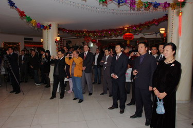 劉大使發(fā)表簡短致詞,表示中國在2009年國際金融危機(jī)中經(jīng)受了考驗(yàn),取得了輝煌成就,中國的國際地位進(jìn)一步上升,而黎巴嫩國內(nèi)形勢趨于穩(wěn)定,這都為中黎兩國關(guān)系的發(fā)展以及華人華僑在黎的事業(yè)發(fā)展提供了有利條件。祝愿中國能在新的一年里繼續(xù)國運(yùn)昌盛,祝黎巴嫩更加穩(wěn)定繁榮,祝中黎雙邊關(guān)系更上一個新臺階,并祝在黎的中國同胞新春快樂、闔家幸福、身體健康、工作順利。