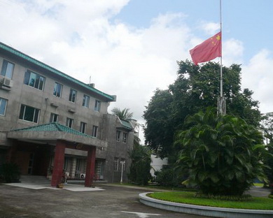 2010年8月15日,中國駐緬甸聯(lián)邦大使館降半旗,向甘肅舟曲特大山洪泥石流災害遇難同胞表示深切哀悼。館員們表示,一定要加倍努力,做好外交工作,以實際行動支援災區(qū)人民的救災努力,相信在黨中央、國務(wù)院的堅強領(lǐng)導下,在全國人民的大力支持下,災區(qū)人民一定能夠早日恢復正常生產(chǎn)和生活,重建家園。