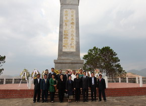 清明節(jié)前夕,駐老撾使館組織前往老撾川壙省、烏多姆賽省祭掃中國烈士陵園。