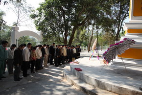 為緬懷先烈,中國駐老撾使館每年清明節(jié)派人前往祭掃。今年是中老建交50周年,也是中國共產(chǎn)黨成立90周年,駐老撾使館以此為契機,同老方聯(lián)合舉辦祭掃活動,旨在繼承革命先烈遺志,鞏固中老傳統(tǒng)睦鄰友好,弘揚國際主義和愛國主義精神,更加具有現(xiàn)實意義。 |
