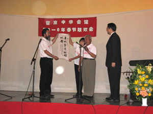 呂凡大使和智京中華會(huì)館主席胡金維先生分別在晚會(huì)上發(fā)表講話,盛贊建國60周年特別是改革開放30多年來中國取得的輝煌成就,衷心祝愿我們偉大的祖國日益繁榮昌盛,祝所有旅智華僑、華人身體健康、生意興隆、闔家幸福、虎年大吉。
