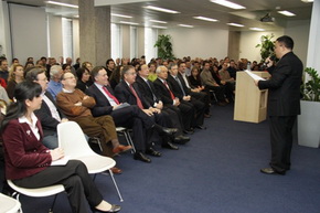 董大使首先代表中國駐瑞士使館向中石化Addax全體員工致以節(jié)日的問候并按照中國的習(xí)俗給大家拜年。董大使稱中石化是中國有實(shí)力的大公司,中石化收購瑞士Addax公司是中國企業(yè)在瑞投資的一大亮點(diǎn)。Addax員工來自近30個(gè)不同的國家,其中不乏石油化工領(lǐng)域的高級管理人才,是一批寶貴的人力資源。董大使勉勵(lì)他們用其聰明才智和辛勤工作為企業(yè)帶來收益和創(chuàng)造財(cái)富,同時(shí)也希望他們?yōu)榇龠M(jìn)中瑞經(jīng)貿(mào)關(guān)系的發(fā)展、增進(jìn)世界各國人民的友誼作出積極的貢獻(xiàn)。最后董大使祝大家虎年身體健康!家庭幸福!工作順利!