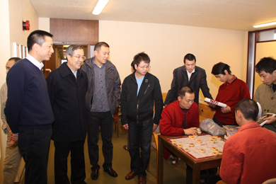 2010年2月14日大年初一,駐冰島大使蘇格驅(qū)車數(shù)十公里,專程前往駐地看望并慰問中國武漢凌云建筑裝飾工程公司職工,使館經(jīng)商參處負責人劉波、游益茂陪同。