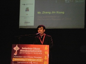 張參贊在上述活動中代表張軍大使發(fā)表新年祝辭,對出席活動的華人同胞和荷蘭朋友送上了虎年新春祝福。張參贊回顧了2009年中國取得的舉世矚目的發(fā)展成就和中荷關系發(fā)展情況,相信2010年上海世博會將為中國與世界交往和中荷關系發(fā)展提供新的契機和亮點。張參贊希望阿姆斯特丹和鹿特丹等城市在促進中荷交往中繼續(xù)發(fā)揮重要作用,并在不斷發(fā)展的中荷關系中獲得新的發(fā)展機遇。