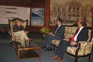 在伊市期間,呂大使先后拜會(huì)了智利第一大區(qū)區(qū)長(zhǎng)席爾瓦、伊市市長(zhǎng)杜波斯特和伊基克自由區(qū)代總經(jīng)理佩雷斯等,并走訪了自由區(qū)內(nèi)的一些中國公司,了解他們的經(jīng)營(yíng)情況。呂大使還到中文學(xué)?赐藞(zhí)教教師。