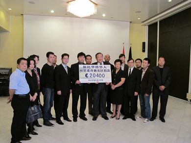 2010年8月19日,駐比利時(shí)使館舉行比僑界向甘肅舟曲災(zāi)區(qū)捐款儀式,張?jiān)h(yuǎn)大使出席并接受旅比各主要僑團(tuán)及熱心僑胞兩萬(wàn)余歐元的聯(lián)合捐贈(zèng)。