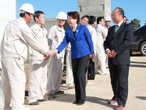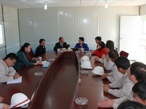 許大使與中鐵大橋局員工親切握手 許大使與中鐵大橋局員工舉行座談會(huì)