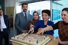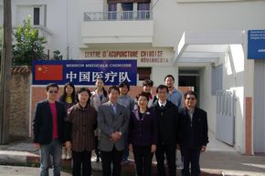 許大使向穆罕默地亞援摩醫(yī)療隊(duì)負(fù)責(zé)人了解情況 許大使與穆罕默地亞援摩醫(yī)療隊(duì)隊(duì)員合影 |