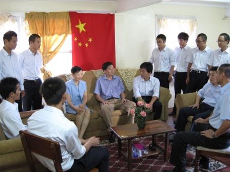 在援圭青年志愿者一處駐地——皇后學(xué)院,張大使實(shí)地察看了青年志愿者的居住和生活環(huán)境,詳細(xì)了解每個(gè)人的工作情況。他說,圭亞那遠(yuǎn)離祖國,生活和工作條件艱苦,大家克服了諸多困難,很快進(jìn)入新角色,全身心地投入對(duì)圭志愿服務(wù)中,在圭政府和民間得到良好反響,為促進(jìn)中圭友好做出了貢獻(xiàn)。他祝愿大家在虎年即將來臨之際,保重身體,一如既往地保持高昂的斗志,勤奮工作,用工作成績向祖國人民交上一分滿意的答卷。
