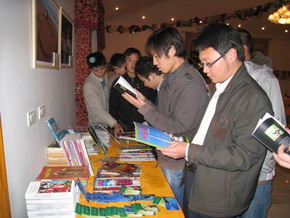 聯(lián)歡會放映了國慶60周年大閱兵精彩片段,全體再次感受那威武雄壯的時代脈搏,共同祝愿祖國更加繁榮強(qiáng)盛。使館青年館員與留學(xué)生們交流了在利生活的感觸和體會,介紹了在使館工作的心得。會場一隅的書報展臺前,留學(xué)生們手捧豐富多彩的中文報刊,讀得津津有味,當(dāng)聽說今后使館將為留學(xué)生中文閱讀、收看CCTV節(jié)目提供幫助時,同學(xué)們更是歡欣鼓舞。