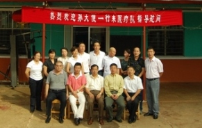 醫(yī)療隊(duì)長向?qū)O大使(右一)介紹工作 孫大使(前排左三)與醫(yī)療隊(duì)員合影