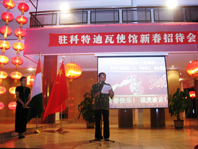 2010年2月10日,魏文華大使夫婦在大使官邸舉辦春節(jié)招待會。我駐科軍事觀察員、援科專家、中資機(jī)構(gòu)代表、華人華僑以及港臺同胞等二百余人歡聚一堂,共度美好佳節(jié)。