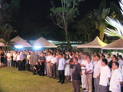 招待會上放映了建國60周年閱兵式和載歌載舞的晚會節(jié)目,并在歡聲笑語中圓滿結(jié)束。 |