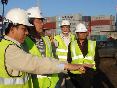 2010年2月26日至27日,駐埃及大使武春華在使館經(jīng)商參處曹甲昌公參的陪同下,考察了中國港灣工程有限責任公司承建的埃及塞得港東港集裝箱碼頭二期水工項目。