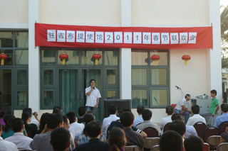 丁年歌盛世,卯兔耀中華。2011年1月27日,中國駐吉布提大使館張燈結(jié)彩,熱鬧非凡,駐吉布提大使張國慶在這里舉行2011年春節(jié)聯(lián)歡會。駐吉中資機(jī)構(gòu)、援吉醫(yī)療隊、華僑華人代表和使館全體人員共100余人懷著喜悅的心情歡聚一堂,共度中華民族的傳統(tǒng)佳節(jié)。