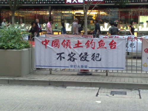 資料圖:香港街頭的保釣標(biāo)語(yǔ)橫幅
