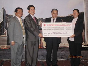 整個(gè)慈善晚會(huì)氣氛熱烈、歡快,共籌集慈善款4億多越盾(約合兩萬多美元)。晚會(huì)結(jié)束前,香港商會(huì)會(huì)長盧國聯(lián)代表商會(huì)當(dāng)場(chǎng)向胡市天福殘疾兒童福利院捐款兩億兩千六百萬越盾(約合12000美元),同時(shí)擬向胡市越中友協(xié)捐6000萬越盾,用于為窮人建設(shè)“情義屋”,余款留作商會(huì)慈善基金。 |