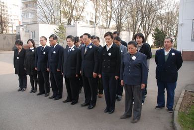 2010年4月21日清晨,中國駐白俄羅斯使館臨時(shí)代辦陳代文率使館全體館員沉痛悼念青海玉樹地震遇難同胞。