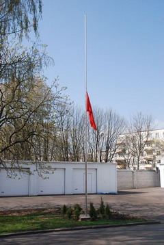 大地震動(dòng),江河嗚咽,草木哀鳴,蒼生泣血,舉國悲慟。今日的寒風(fēng)格外凜冽,空氣也因哀傷而凝固。在駐白俄羅斯使館的小廣場上,全體館員身著素服,佩戴白花,面向青海玉樹方向整齊肅立。隨著鮮艷的五星紅旗徐徐下降,館員們懷著無比沉重和悲痛的心情默默哀悼,表達(dá)對受災(zāi)同胞的無限哀思。