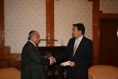 2010年4月22日,駐巴基斯坦大使羅照輝在使館會見巴基斯坦拉瓦爾品第維族華僑華人協(xié)會主席拉扎·汗、吉爾吉特—巴爾蒂斯坦維族華僑華人協(xié)會會長卡尤姆,并接受他們?yōu)榍嗪S駱涞卣鹗転?zāi)同胞募集的捐款。