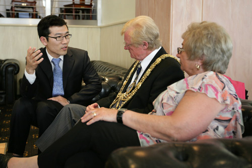 英國華夏文化協(xié)會會長貝學賢率副秘書長兼教育部部長李鵬,新聞部副部長張博等一行出席了會見。貝會長對新任市長Councillor Geoff Wells表示了衷心的祝賀,他說道,“希望英國新任政府繼續(xù)從戰(zhàn)略高度和長遠角度把握兩國關系,并真心的祝愿中英兩國在未來的合作發(fā)展上道路平順。同時也愿意盡自己最大的努力與英國各級政府及民間各大社團共同努力,進一步深化各領域的務實合作!